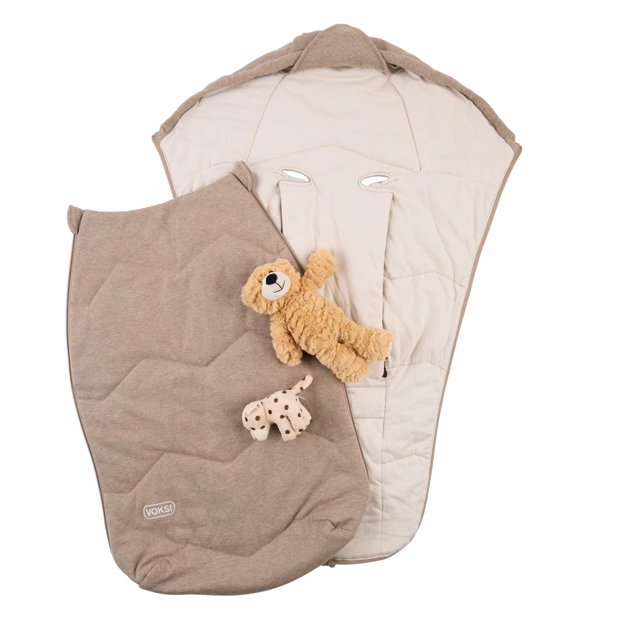 Åkpåsen är tillverkad av mjuka och naturliga material för att ge ditt barn bästa möjliga komfort. Voksi Breeze Light har ett yttertyg i bomull/polyester och fyllning av återvunnen polyester. Innertyget är tillverkat av ekologisk bomull, vilket gör det ombonat och behagligt för barnet i åkpåsen. Alla material i Voksi Breeze är OEKO-TEX® Standard 100 klass 1-certifierade, vilket är en kvalitetsmärkning som innebär att inga av materialen i produkten innehåller skadliga kemikalier.