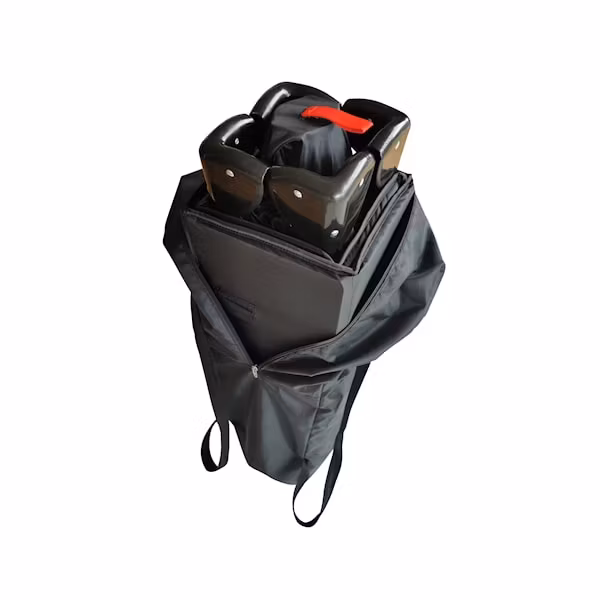 Den är otroligt enkelt att fälla upp och vika. Du drar in den röda remmen i mitten och låter sängen vika ut sig själv och sedan måste du bara dra upp sidorna tills du hör att den klickar och då är sängens sidor i sitt låsta läge. När den skall fällas ihop igen kräver det bara ett lätt tryck på undersidan av sängens kanter på vardera sida, och sedan kan den enkelt skjutas ihop och rullas in i madrassen för att få plats i transportväskan.