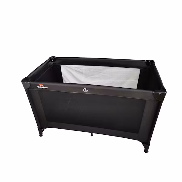 Hopfällbar Resesäng i polyester. Klassisk svart resesäng, sängen inkluderar en tunnare madrass med bottenplatta och bärväska med handtag.