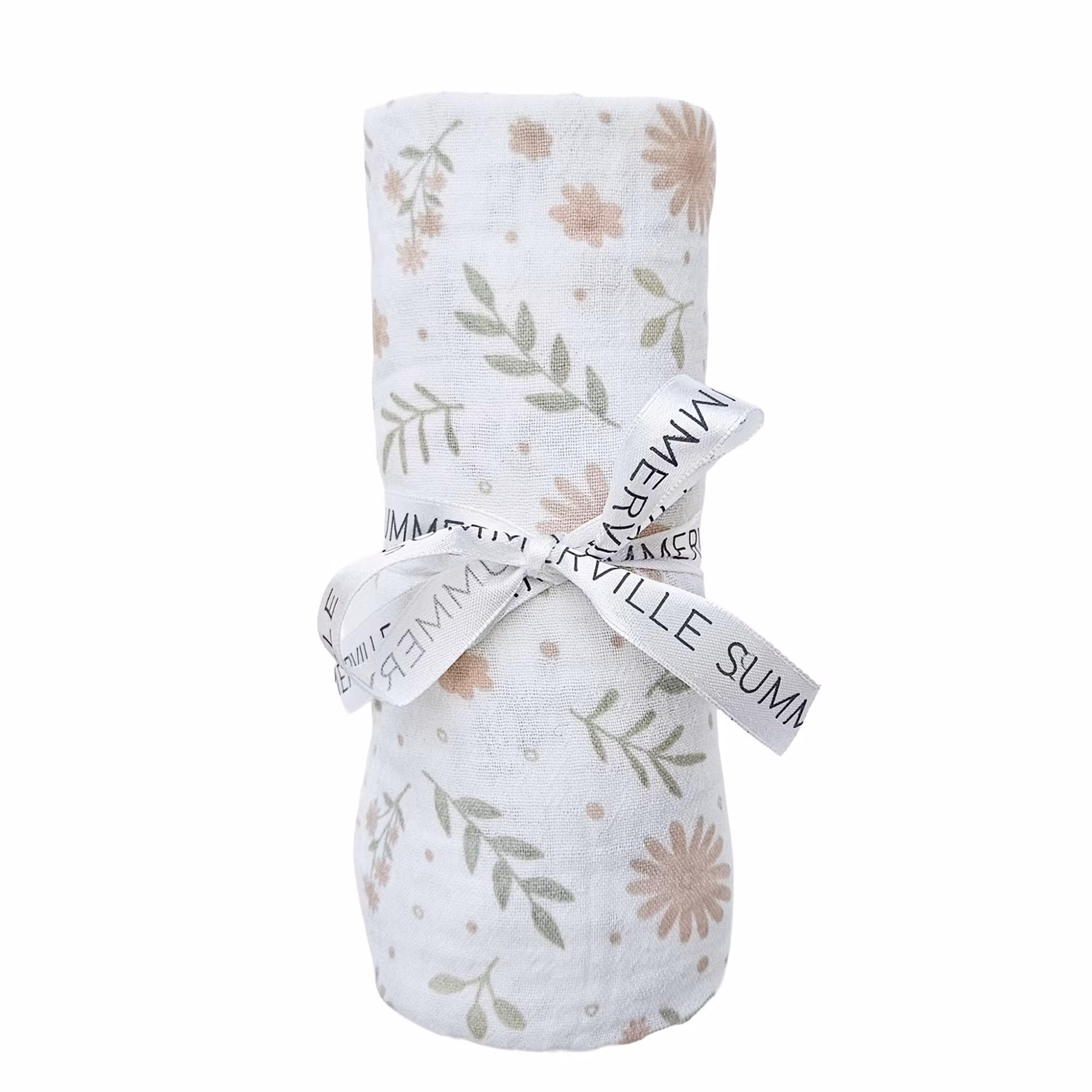 Denna babyfilt i flera lager krinklad, ekologisk bomullsmuslin från Summerville organic har en fin struktur och matchande spetskant. Den passar lika bra i vagnen som i vaggan, sängen eller som snuttefilt.