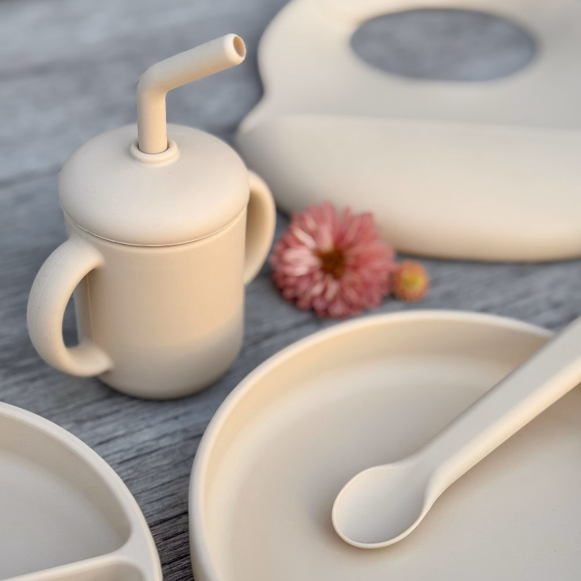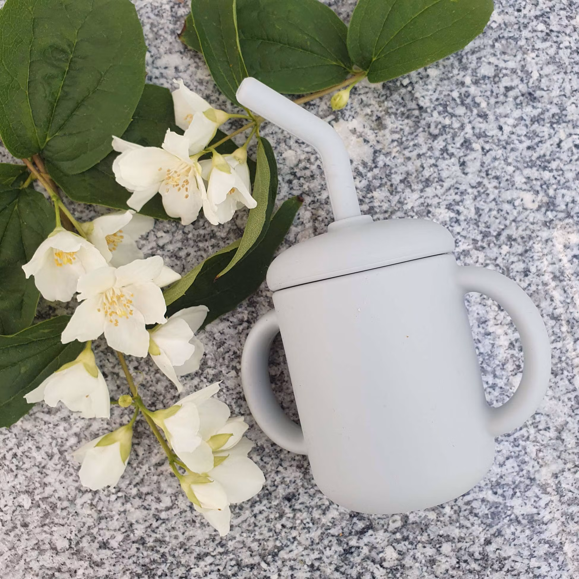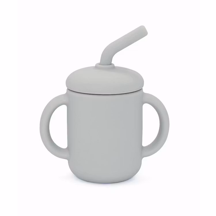 Mugg i silikon med dubbla handtag och lock med sugrör.Den behändiga muggen i mjuk silikon är enkel för små barnhänder att greppa och dricka ur, utan spill.Sugrö