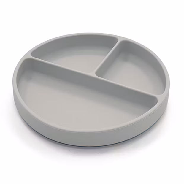 Tallrik för barn med tre separata fack för maten, i silikon.